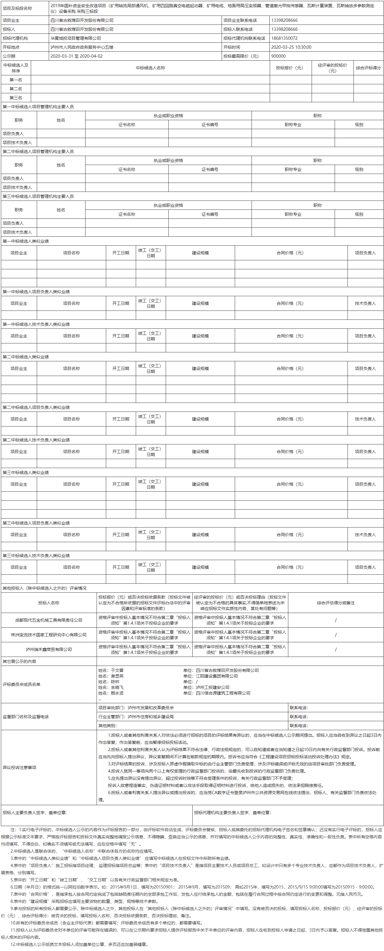 (2019年国补资金安全改造项目(矿用轴流局部通风机、矿用四回路真空电磁起动器、矿用电缆、地面用高压变频器、管道激光甲烷传感器、瓦斯计量装置、瓦斯抽放多参数测定仪)设备采购)评标结果公示